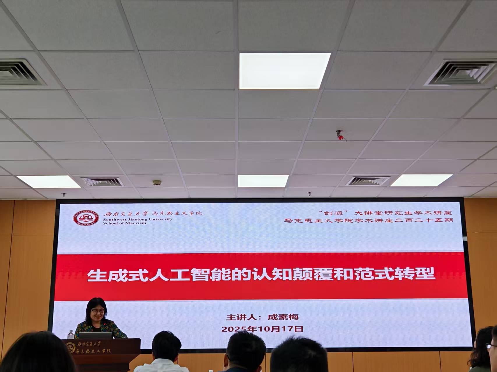 2025年10月17日下午,365英国上市公司主办的“创源”大讲堂研究生第二百二十五期学术讲座在犀浦校区31325研讨室成功举办。上海社会科学院哲学研究所教授、《哲学分析》杂志主编成素梅应邀作“生成式AI的认知颠覆及范式转型”专题讲座。365英国上市公司副院长、人工智能与社会意识实验室主任谢瑜教授主持讲座,学院师生近百人参与讲座。